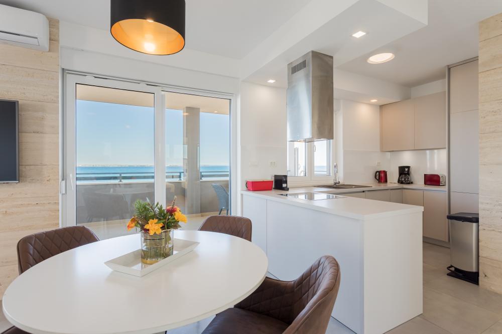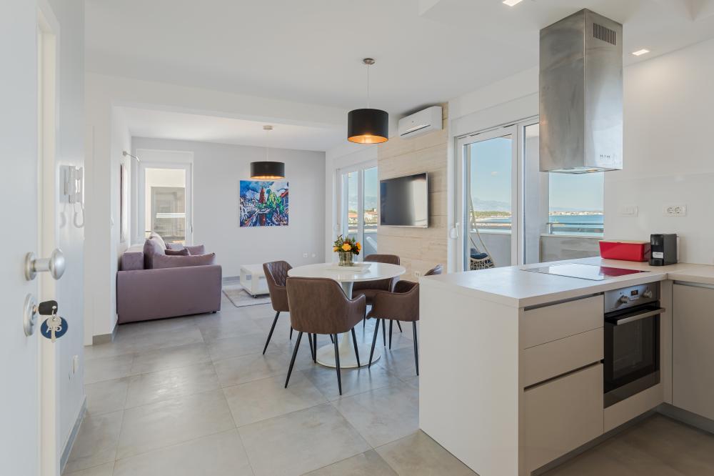Představte si, že se ráno probudíte v prostorném a moderním apartmánu v horním patře resortu, otevřete dveře na 30m² velkou terasu s výhledem na moře, uděláte si kávu v plně vybavené kuchyni a celý den strávíte přesně tak, jak chcete - v pohodlí, klidu a se vším po ruce.